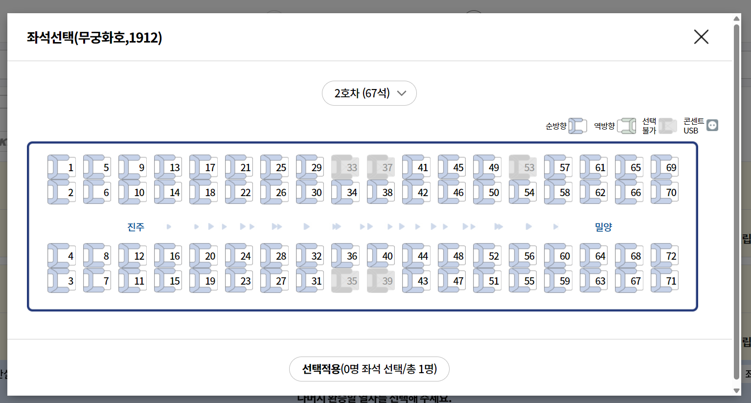 4. 좌석 선택 (USB, 창가/복도 선택 가능)