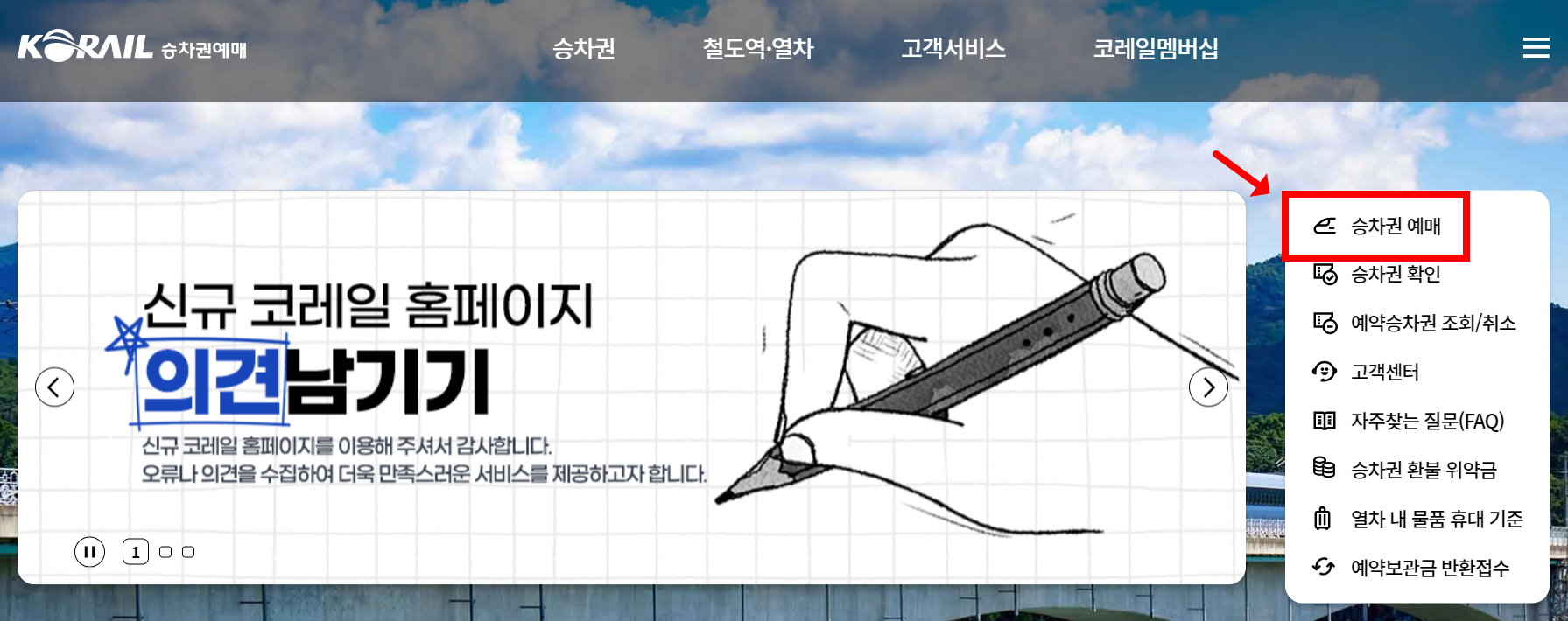 1. 코레일 홈페이지(또는 코레일톡 앱) 접속해주세요!