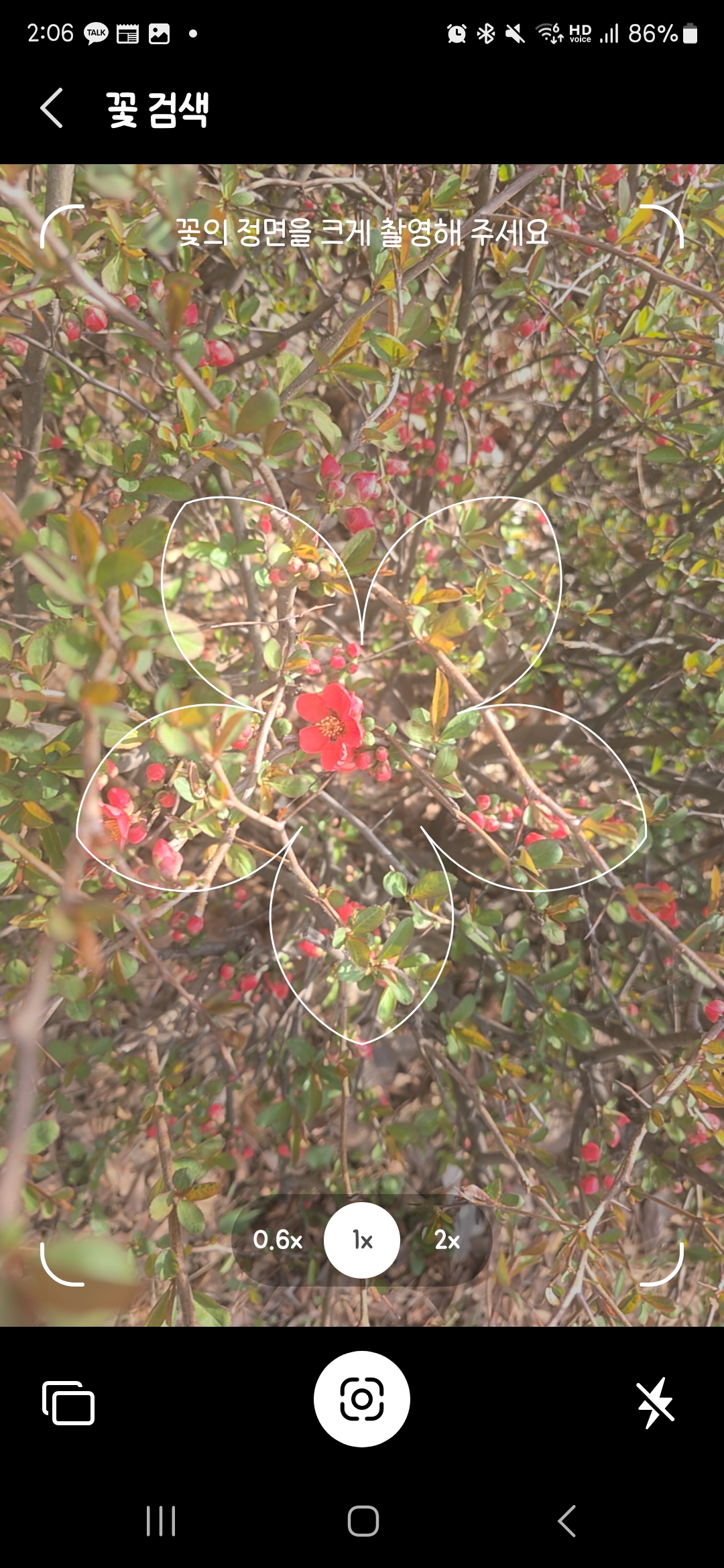 🌸실제 촬영 예시 사진을 보면 이렇게 꽃 윤곽선이 화면에 맞춰 표시되고, 그 안에 꽃을 위치시키면 앱이 자동으로 인식해줍니다.