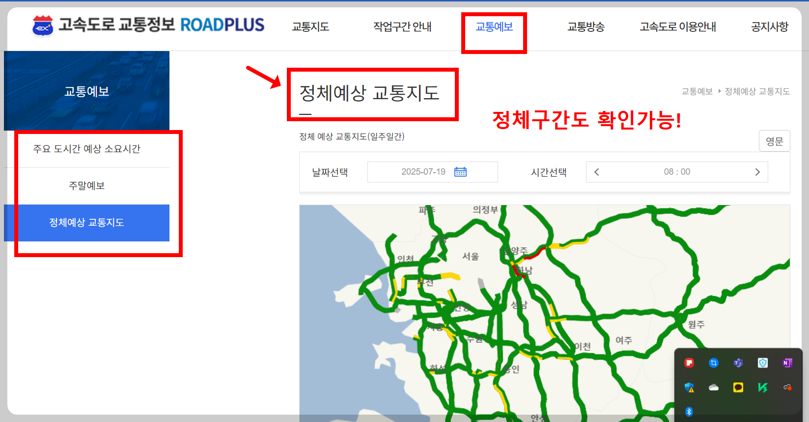 - 좌측 메뉴 → ‘정체예상 교통지도’ 선택