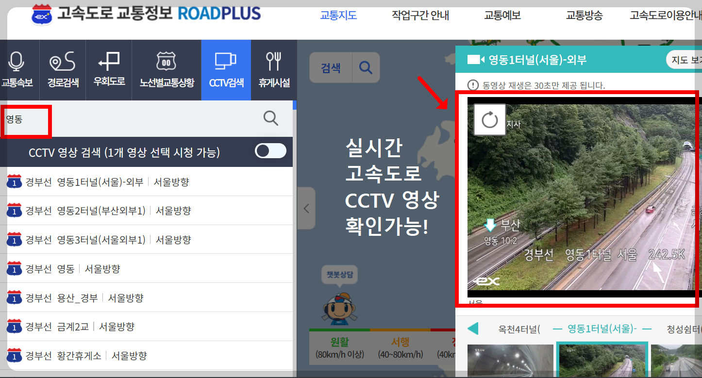 단 30초의 영상으로 현재 구간의 정체 상황, 침수 여부, 교통량까지 직접 눈으로 확인할 수 있기 때문에 사고 예방과 시간 절약에 큰 도움이 됩니다.