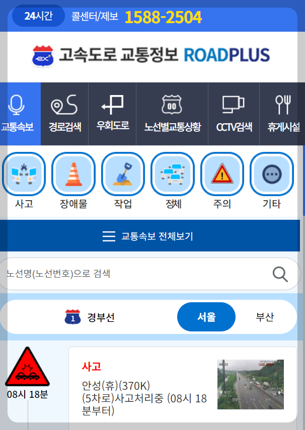 📢한국도로공사에서 운영하는 ROADPLUS(로드플러스) 서비스를 이용하시면, 현재 고속도로의 실제 모습과 정체 상황, 침수 여부 등을 빠르게 단 1분이면 확인하실 수 있습니다! 접속량이 많아지면 지연될 수 있으니 미리 서둘러주세요!