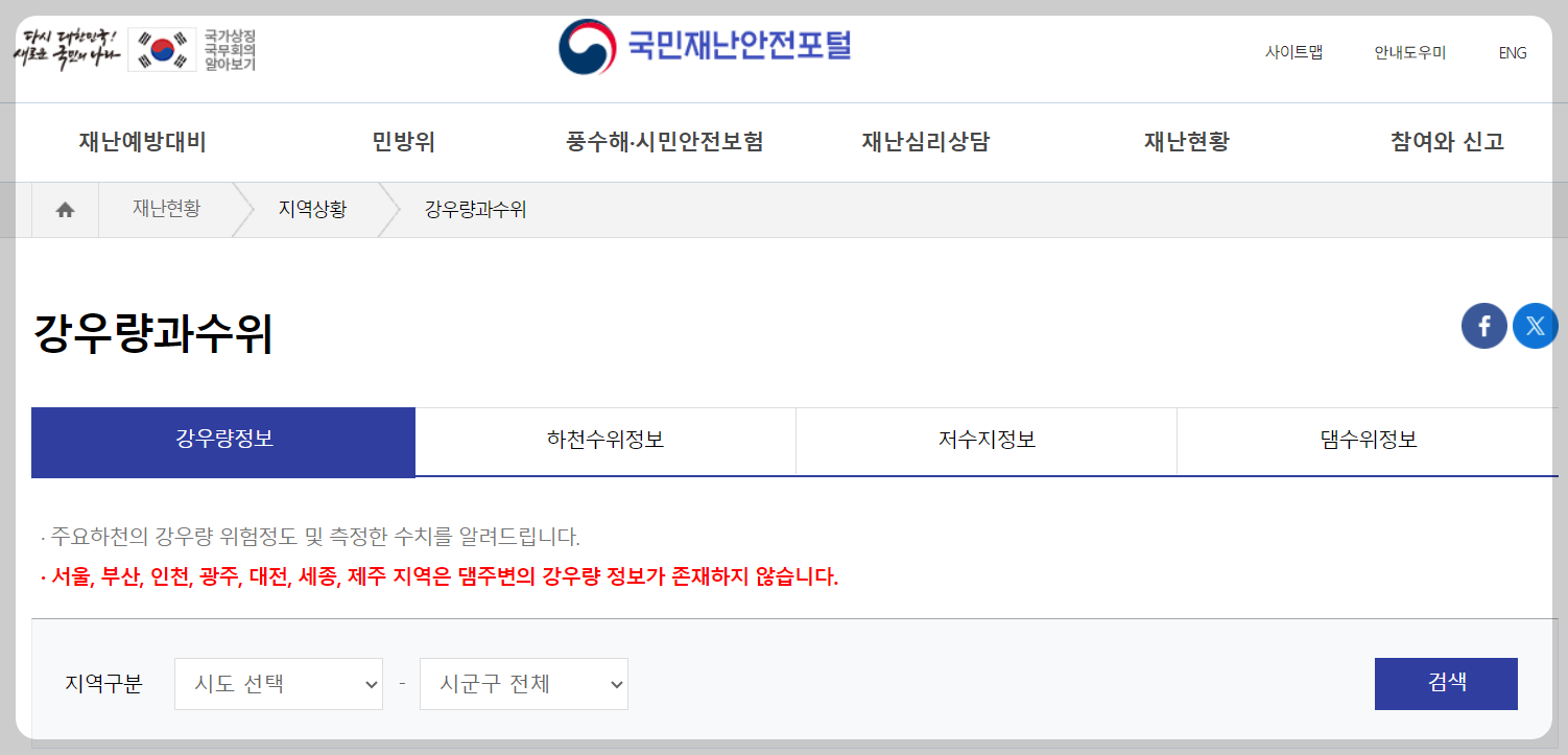 - 국민재난안전포털 → https://www.safekorea.go.kr