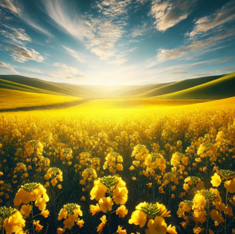 1. 명랑함 (Cheerfulness) – 유채꽃밭을 보면 기분이 좋아지듯, 밝고 긍정적인 에너지를 뜻해요.