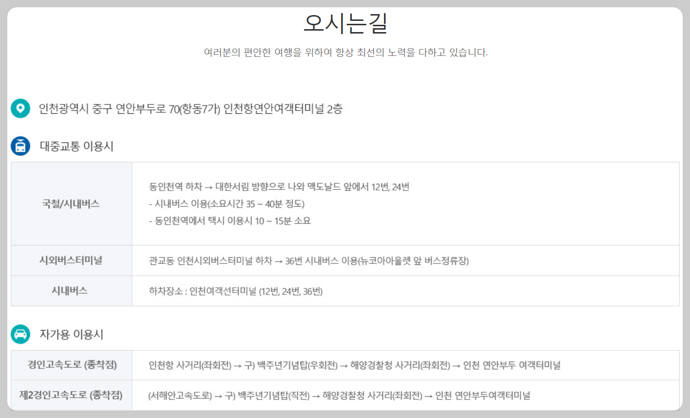 📍8. 인천 연안여객터미널 오시는 길 & 주차장 안내