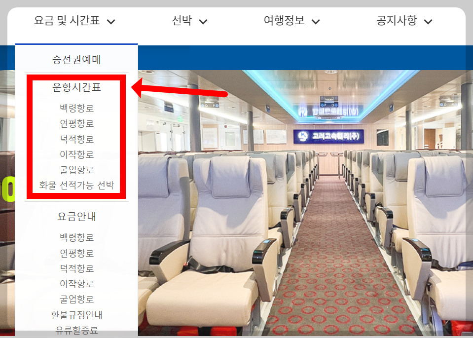 🔹 1. PC 예매 - 고려고속훼리 공식 홈페이지