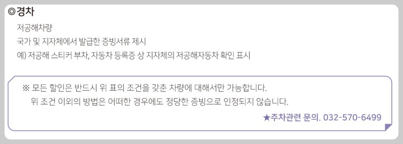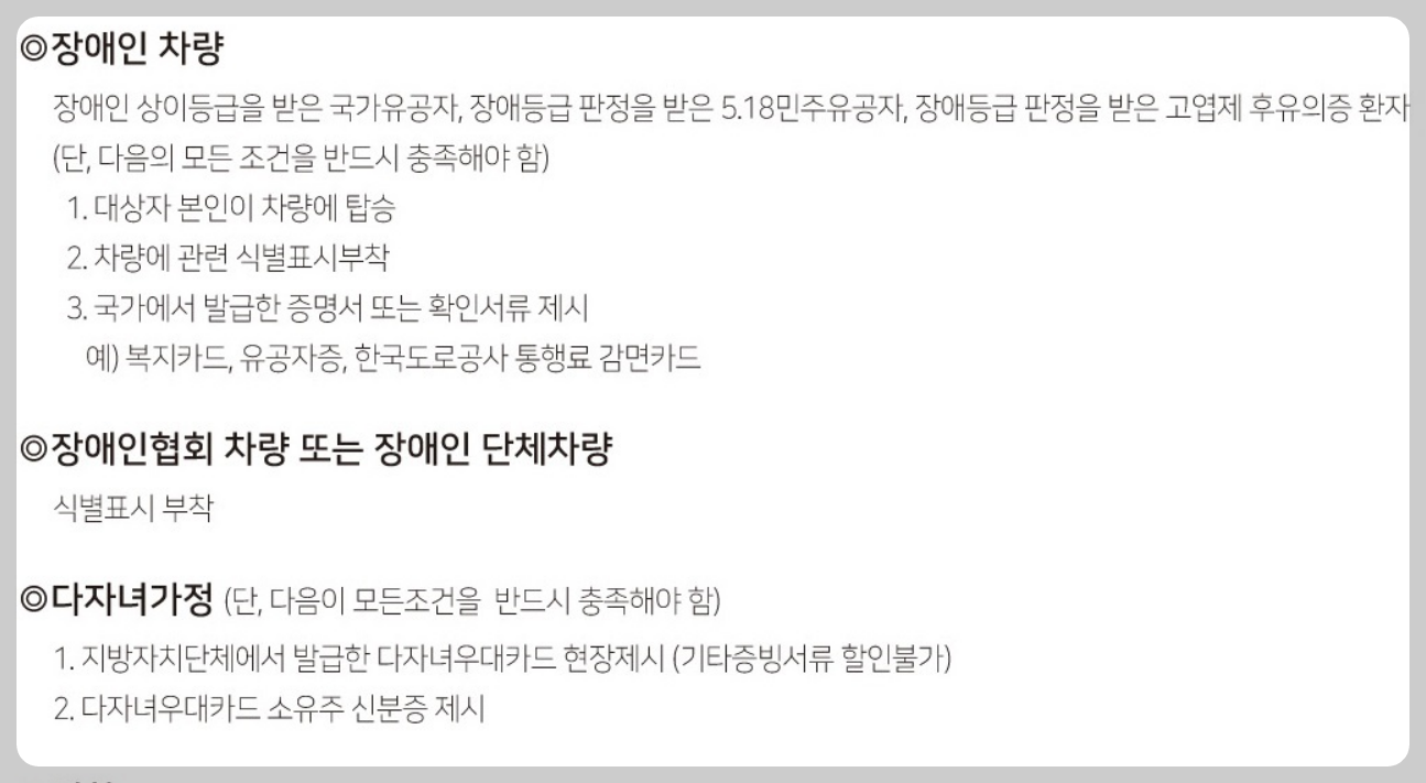 ♿ 주차 할인 대상 차량 안내