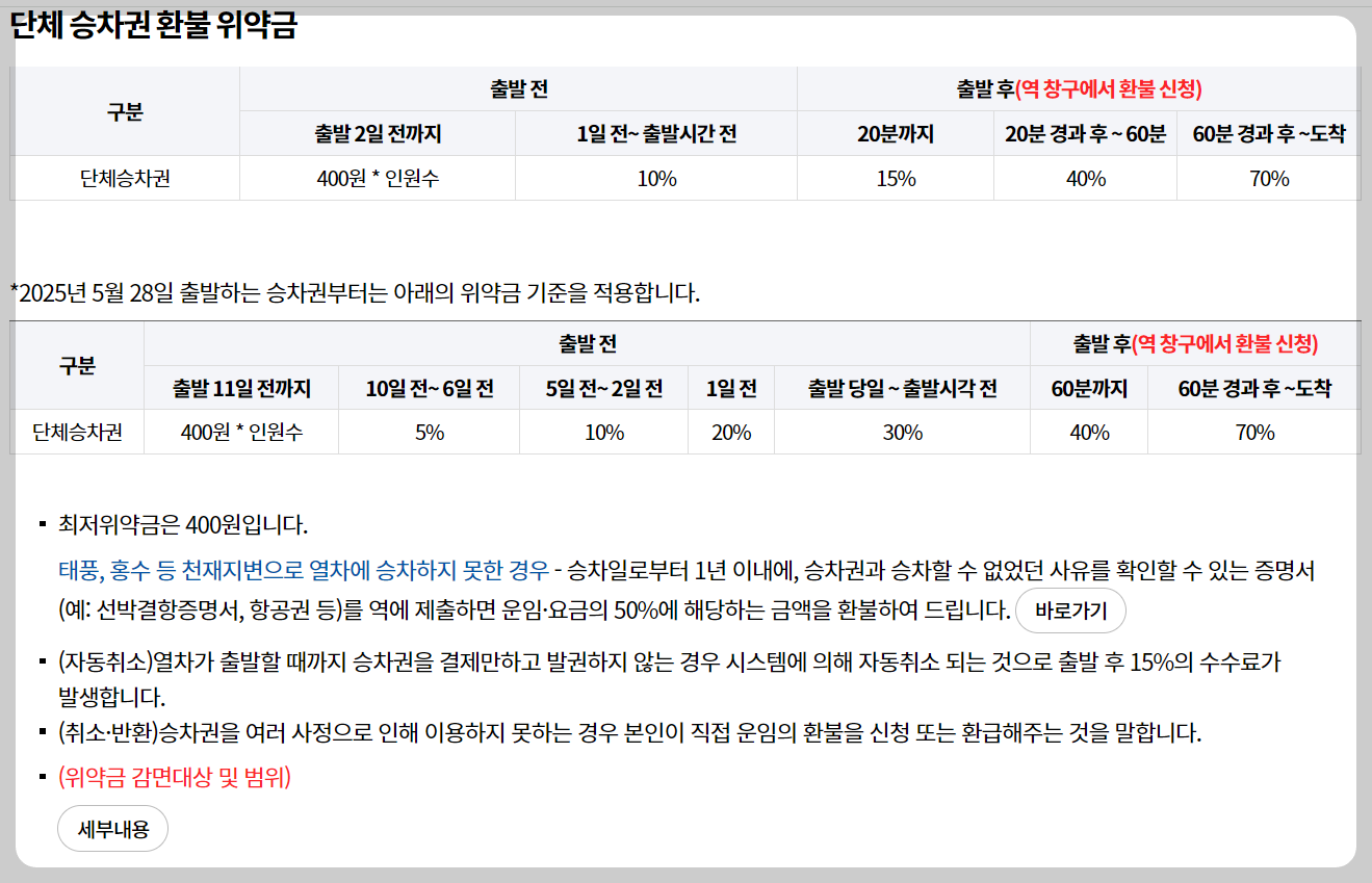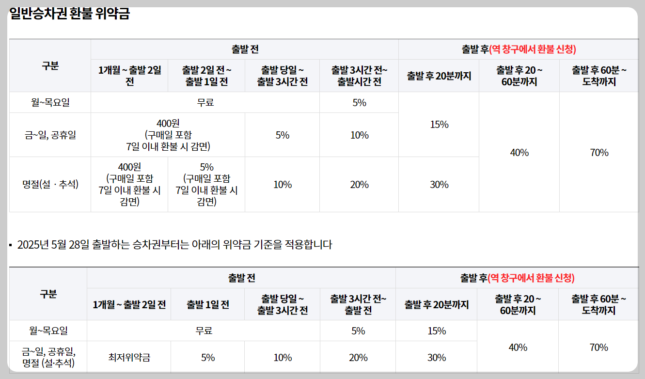 승차권 환불 & 위약금 규정 요약