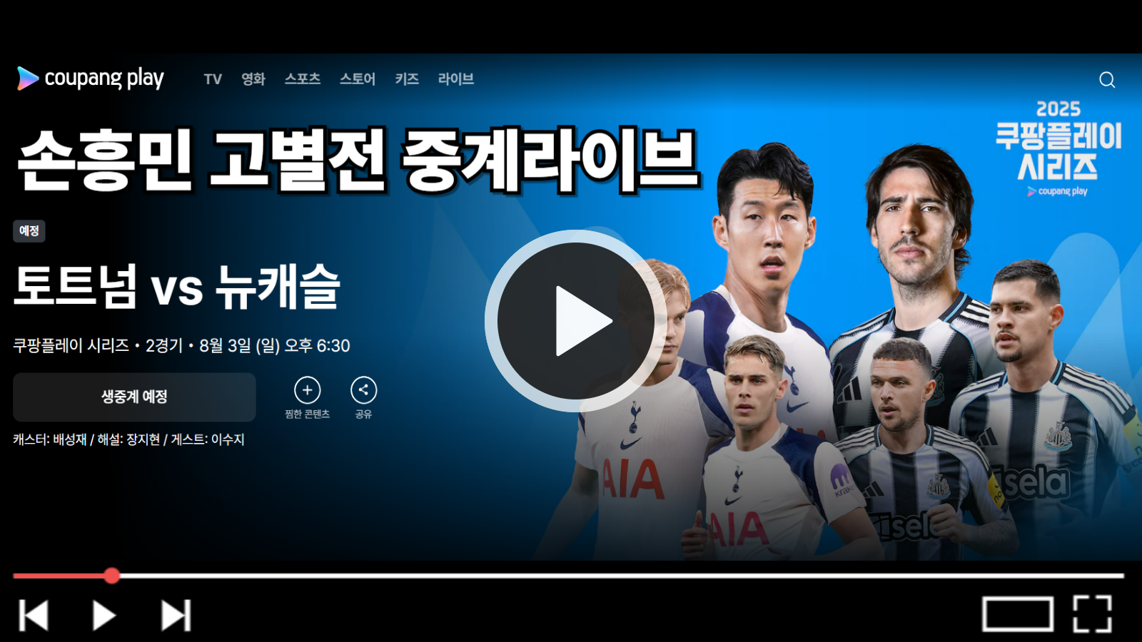 📌 생중계는 오후 8시부터 쿠팡플레이에서 단독 제공되며, 실시간으로 시청하지 못했다면 경기 종료 후 하이라이트 영상을 꼭 확인해보시길 바랍니다.