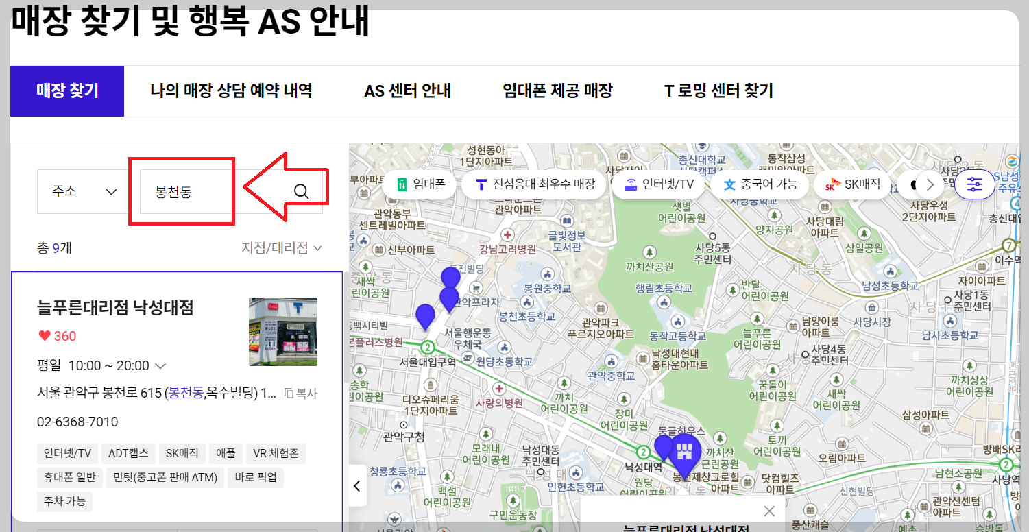 - 봉천동 sk 텔레콤 대리점 예시 (사진참고)